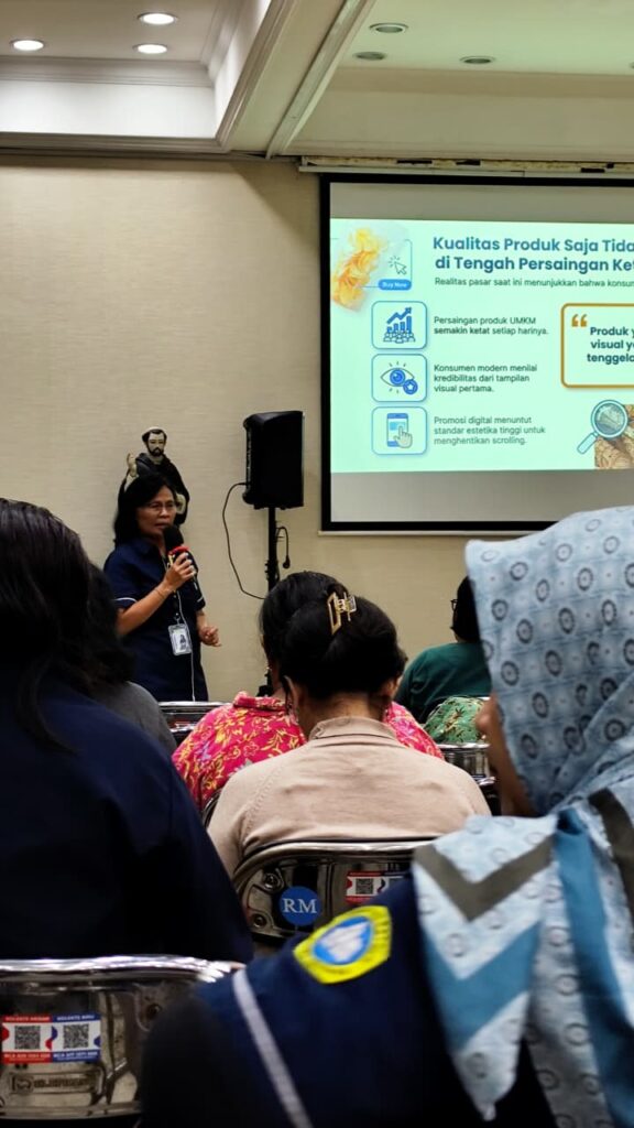 Melalui metode penyampaian yang interaktif, peserta diajak untuk memahami pentingnya visual produk dalam pemasaran digital serta cara mengembangkan desain produk agar mampu mengikuti perkembangan era digital  sehingga mampu mempertahankan eksistensinya di pasar yang semakin kompetitif.